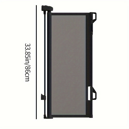Retractable Mesh Gate for Stairs & Doorways, Metal Safety Barrier for Dogs & Pets, Stainless Steel, Indoor/Outdoor Use, Single-Hand Operation, Secure Lock, Easy Install, Hardware Mounted - Black