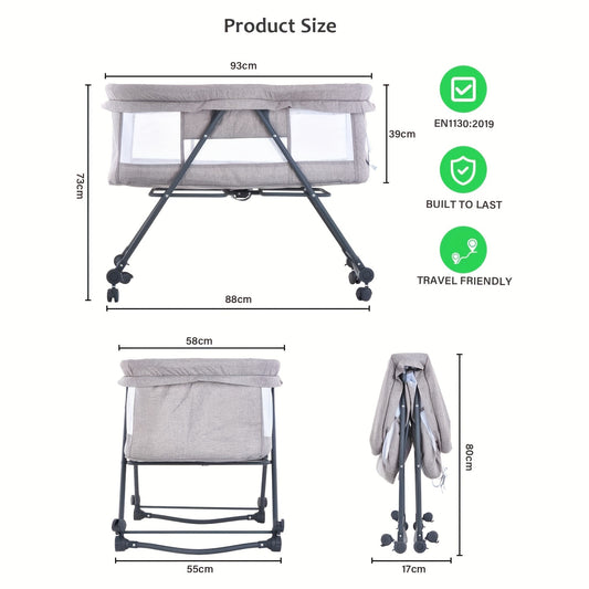 UBRAVOO Grab-and-go Travel Cot, Baby Crib with Mattress I Silent Wheels I Carry Bag I Mosquito Net, Baby Bedside Crib | Rocking Crib Convertible As Halloween, Christmas Gift