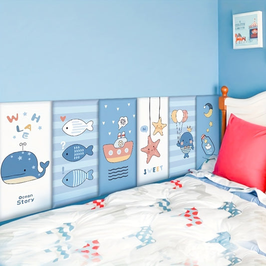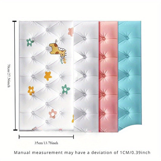 4pcs/6pcs Cartoon Thickened 3D Anti-Collision Wall Sticker, Room Bedroom Bedside Soft Bag Back Cushion Self-Adhesive Wall Stickers, Waterproof Bedside Wall Aisle Sticker, 32.0cm X 68.0cm